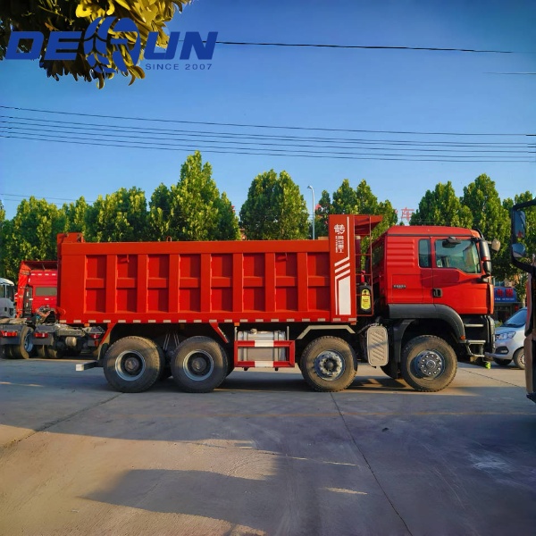 SinoTruk Howo Sitrak 8x4 Dump Tipper Truck е изключителен в областта на инженерния транспорт със силната си мощност и висок капацитет за натоварване. The truck is equipped with MC series engine of China National Heavy Duty Truck, such as MC11.44-60, inline six-cylinder, water-cooled, four-stroke, supercharged intercooler, high-pressure common rail, with a displacement of 10.518L, a max horsepower of 440 hp, a max output power of 324kW, a max torque of 2,100N-m, a torque speed range of 1000-1400rpm, силна мощност и отговаря на Националния стандарт за емисии на VI. Системата за предаване е съчетана с 12-степенната скоростна кутия на Националния тежкотоварен камион (HW25712XS), сдвоена с 452 заден мост със съотношение на скоростта 5,45, което гарантира висока ефективност на предаване на мощност и плавно изместване на предавката към адаптиране към различни сложни условия на труд. Меодното база е 1950 + 4025 + 1350 мм, размерът на товарната кутия е 8000 × 2350 × 1500 мм, номиналният товарен капацитет е 15370 кг, а максималната обща маса е 31000 кг, което може да задоволи транспортното търсене на мащабни инженерни проекти. Кабината е оборудвана със система за окачване на въздушна възглавница с четири точки, която ефективно намалява вибрациите и подобрява комфорта на шофиране. Той също така носи редица интелигентни системи за подпомагане на шофиране, като 360 ° изглед на съраунд, тахограф, мониторинг на налягането в гумите, предупреждение за шофиране на умора и т.н., за да подобри безопасността на шофирането.
